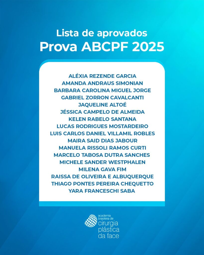 A Academia Brasileira de Cirurgia Plástica da Face parabeniza todos os que concretizaram mais esta conquista em suas carreiras.